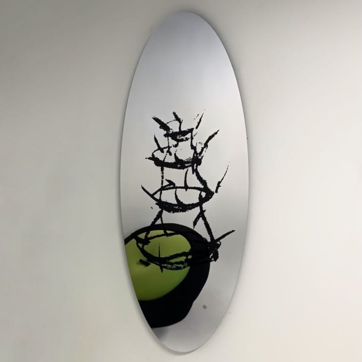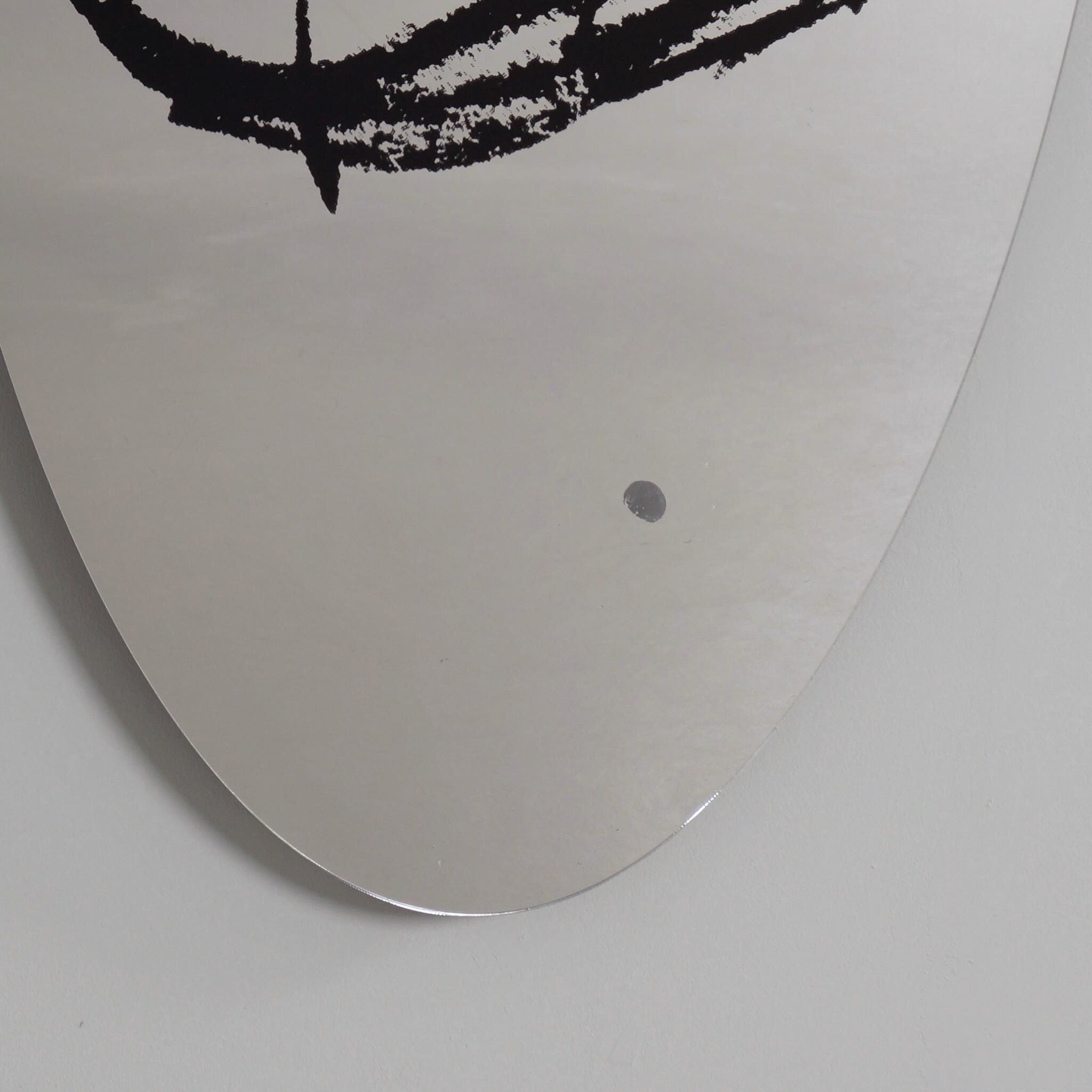 De conditie het wandobject is goed. Onderaan het spiegelvlak bevindt zich een klein plekje; het perspex toont enkele oppervlakkige krassen die typerend zijn voor het materiaal. De constructie is stevig en de grafische print is helder en volledig intact gebleven – een spiegel die zowel functioneert als visuele verwijzing naar Duchamps conceptuele oeuvre.