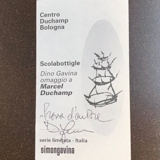 Wandobject Scolabottigle van Dino Gavina met Duchamp-zeefdruk uit 1987