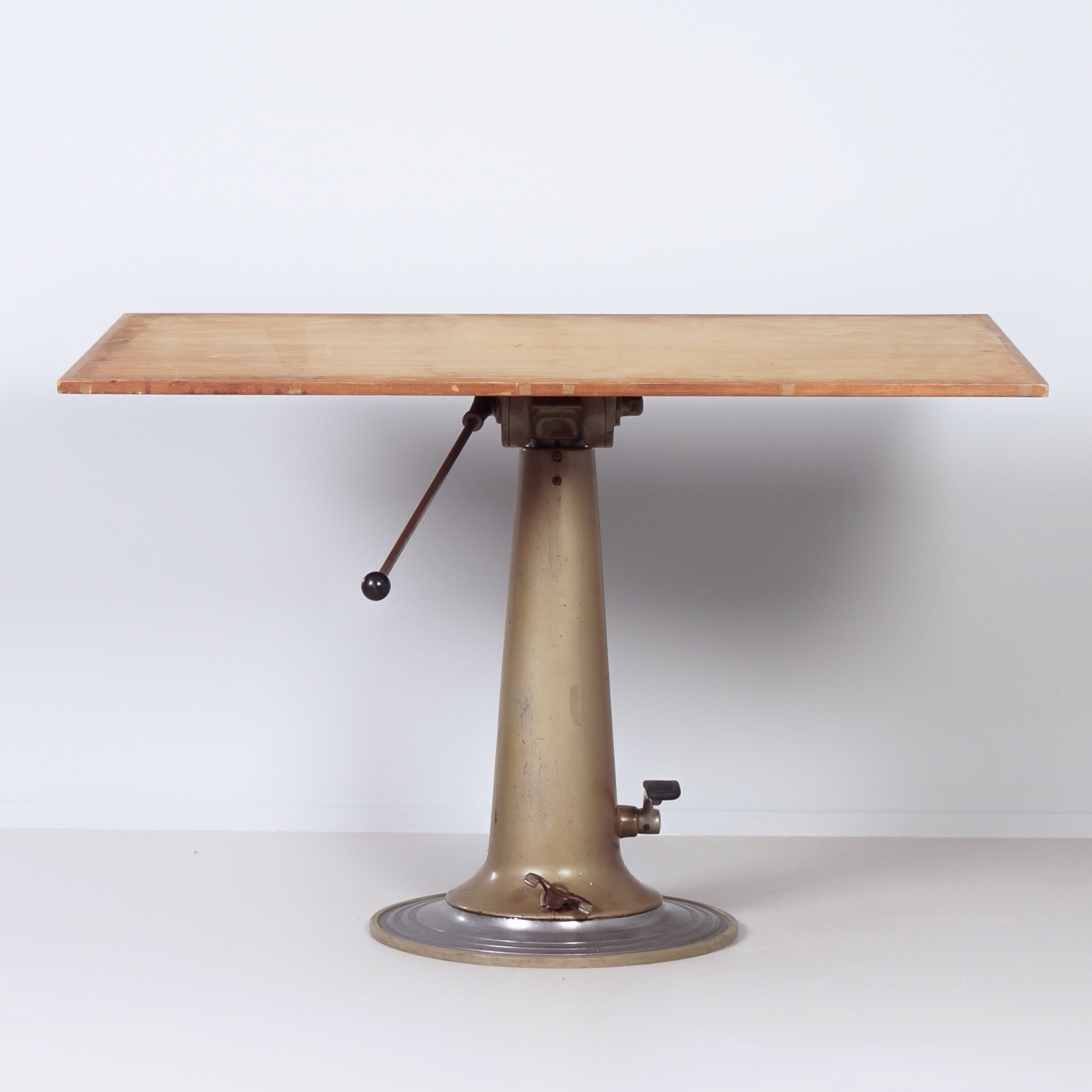 Industriële Tekentafel van Nike Hydraulics uit de jaren 50, draaibaar en in hoogte verstelbaar