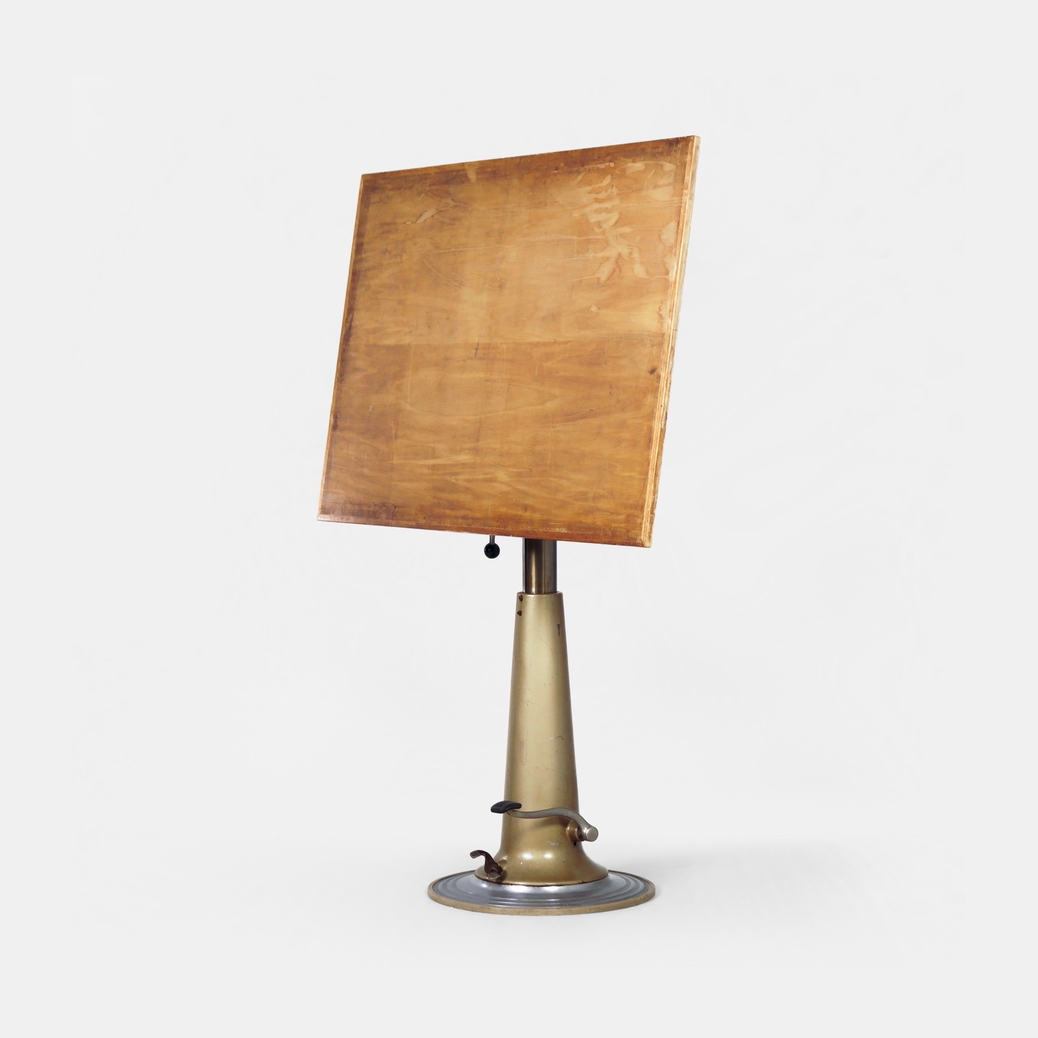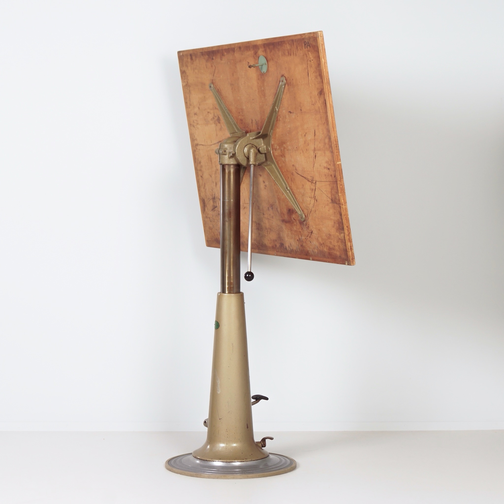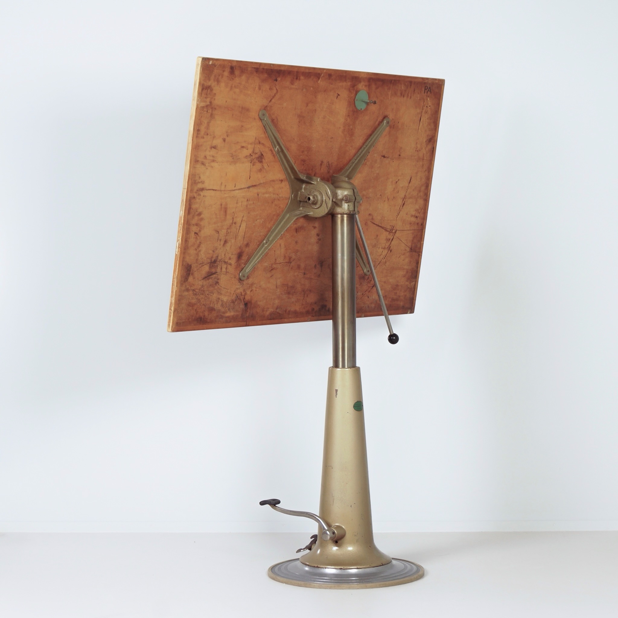 De conditie van deze tekentafel is goed, passend bij de leeftijd. De constructie is solide en de hydrauliek werkt naar behoren. Zichtbare gebruikssporen zijn aanwezig, passend bij intensief gebruik in een atelieromgeving. De prijs is uitsluitend voor de tekentafel, zonder de stoel.