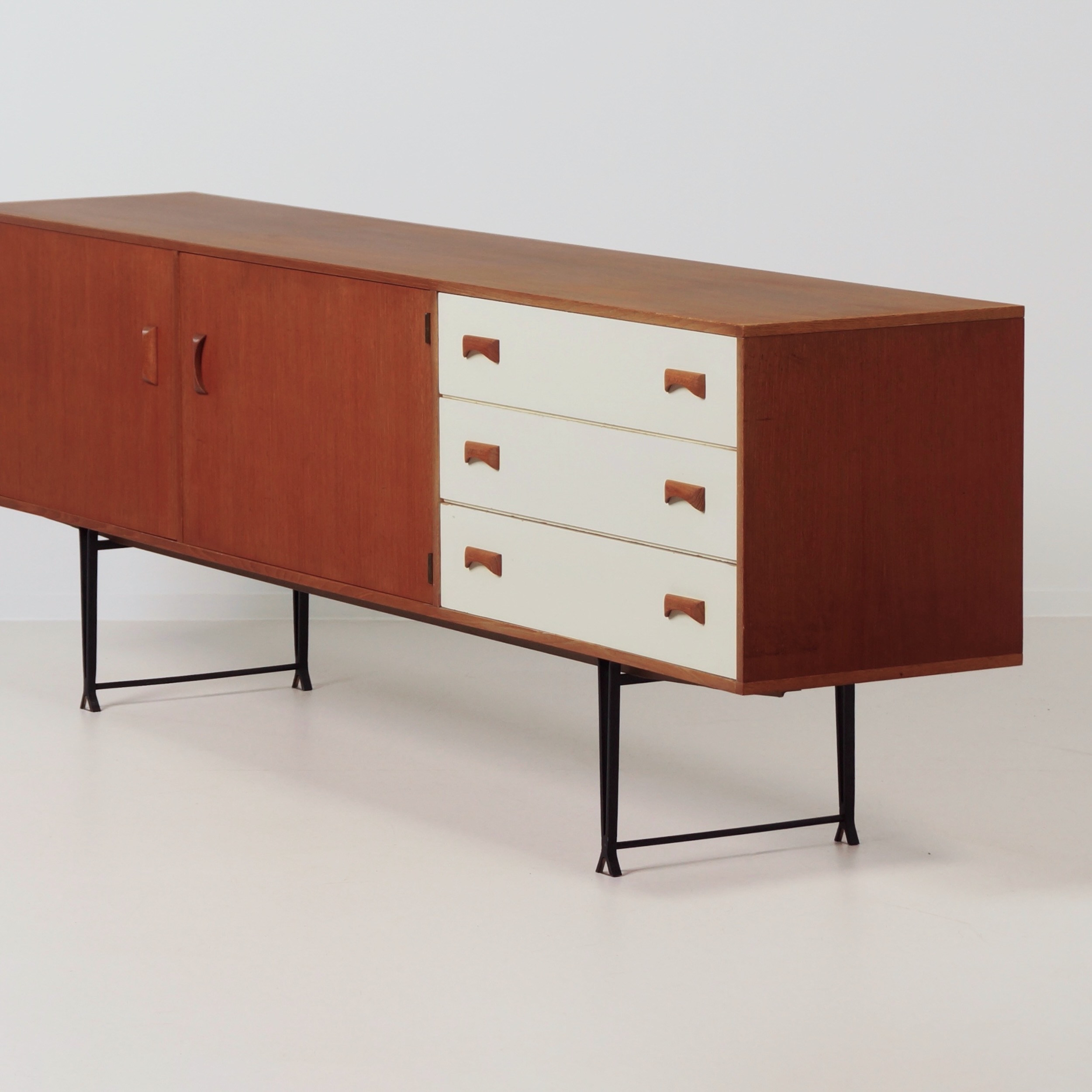 Modulus TL225 dressoir van Kho Liang Ie voor Fristho, eind jaren 50 in teak met witte laden